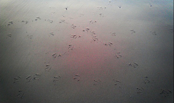 Above: the beach has a lot of traffic. Caution — birds crossing!