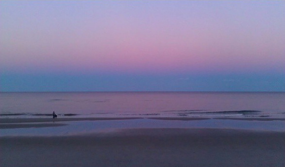Above: Man and his best friend enjoying a cotton-candy-colored sunset on the Atlantic.