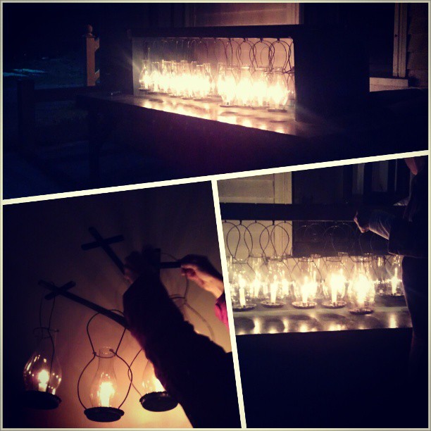 Below: our writers/poets group collected lanterns and joined the Goddess group for a late-night walk on the island and a trip to the chapel, where we recited our poetry for those in attendance, then stayed to write some more by candlelight after the others had gone. An amazing experience…