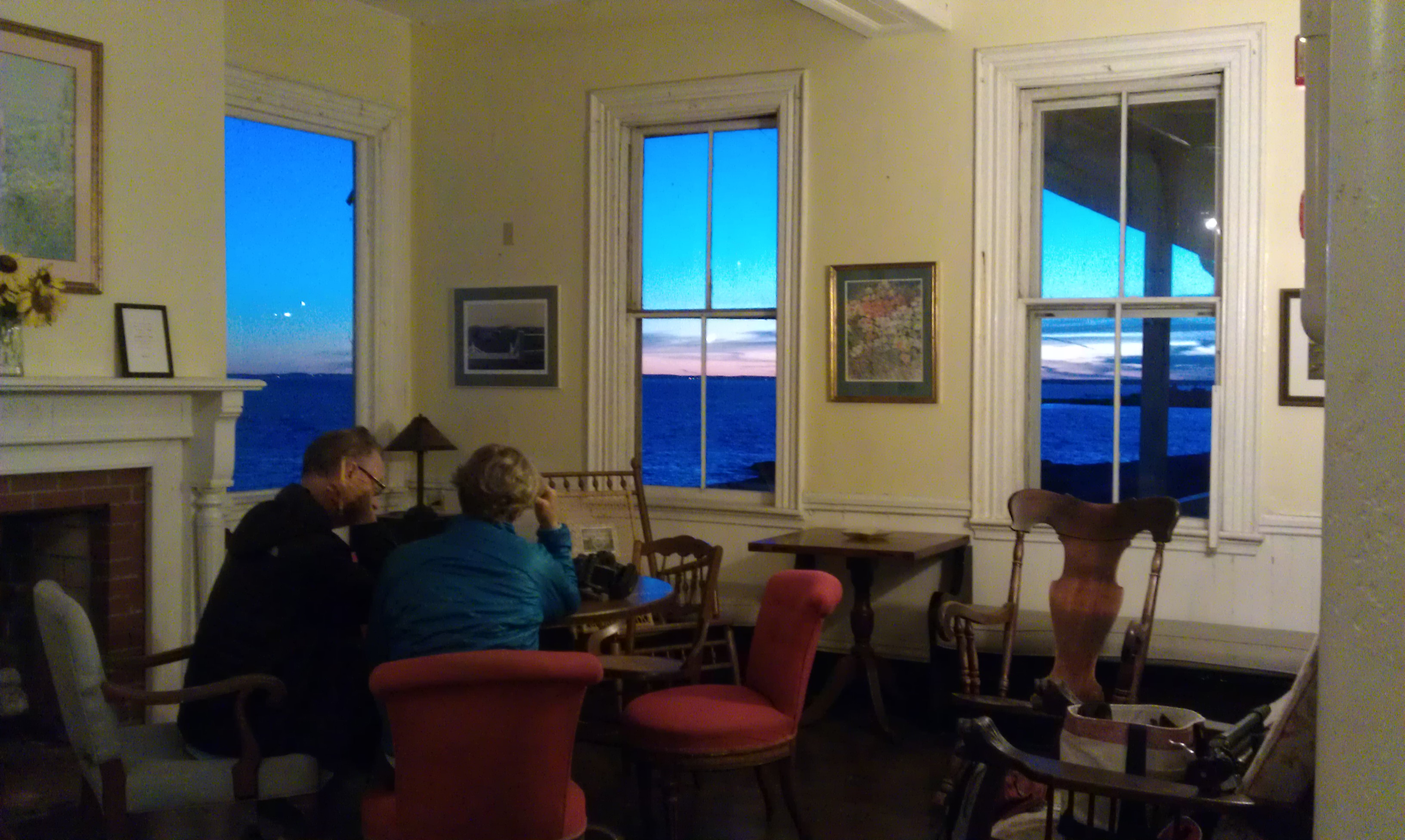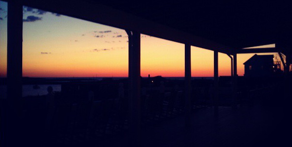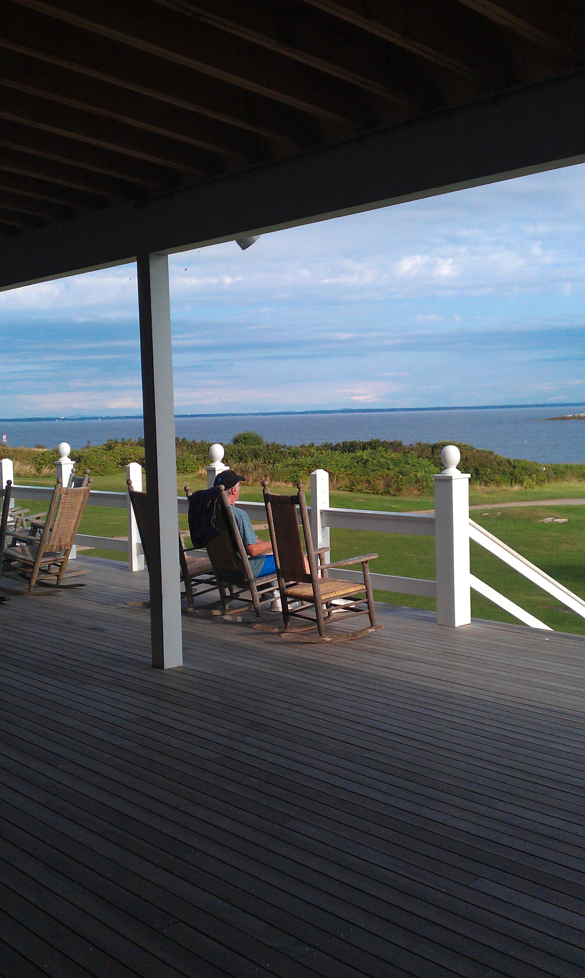 Above: one of my fellow writers (Carla, a very talented poet from New Hampshire) watches the sun set from the front porch of The Oceanic.