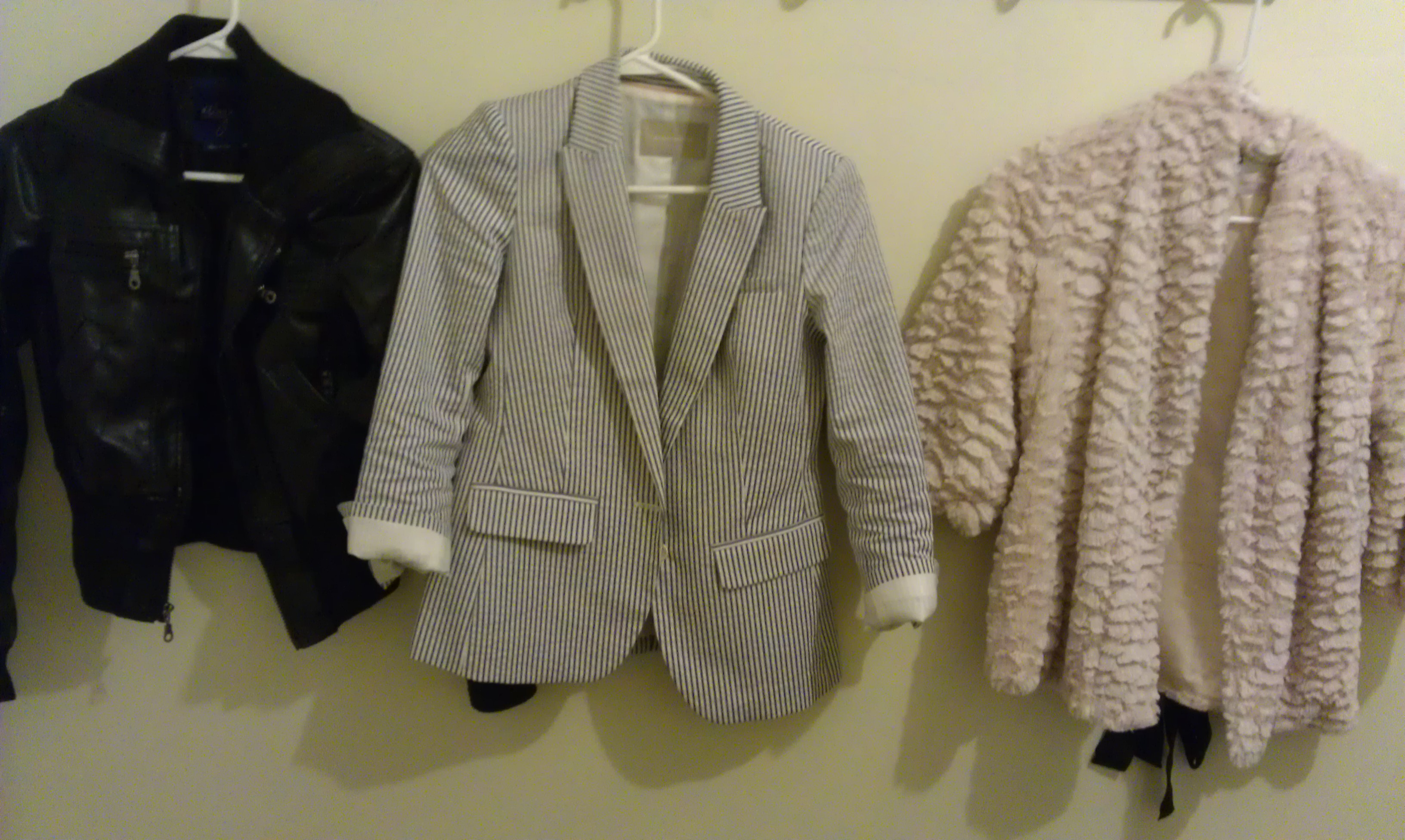 …also, a few hooks on one wall, for hanging a few coats/garments…