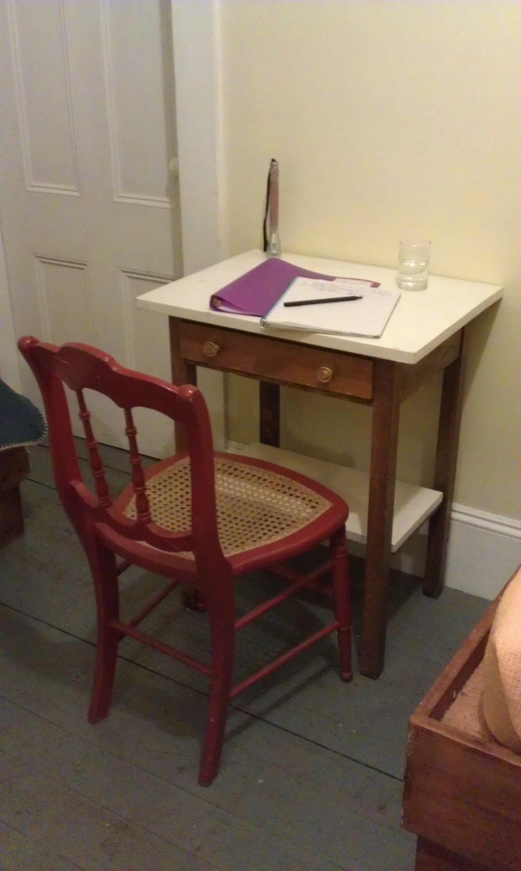 Below: Before sleeping, I’d move the chair over to my desk and set up my writing spot for the night, and I’d compose poetry by flashlight in this quaint, historic room in the middle of the Atlantic. Life just doesn’t get any better…