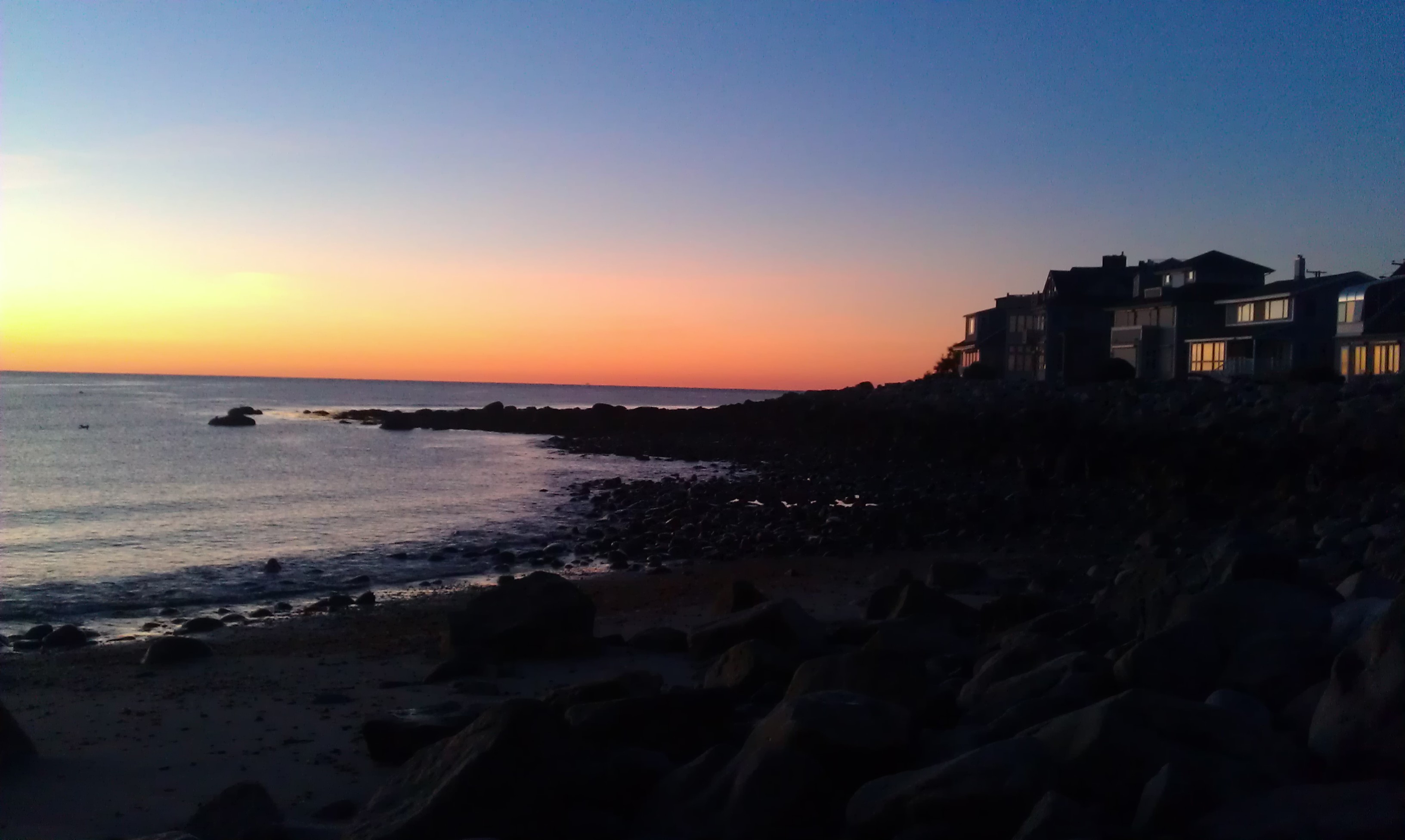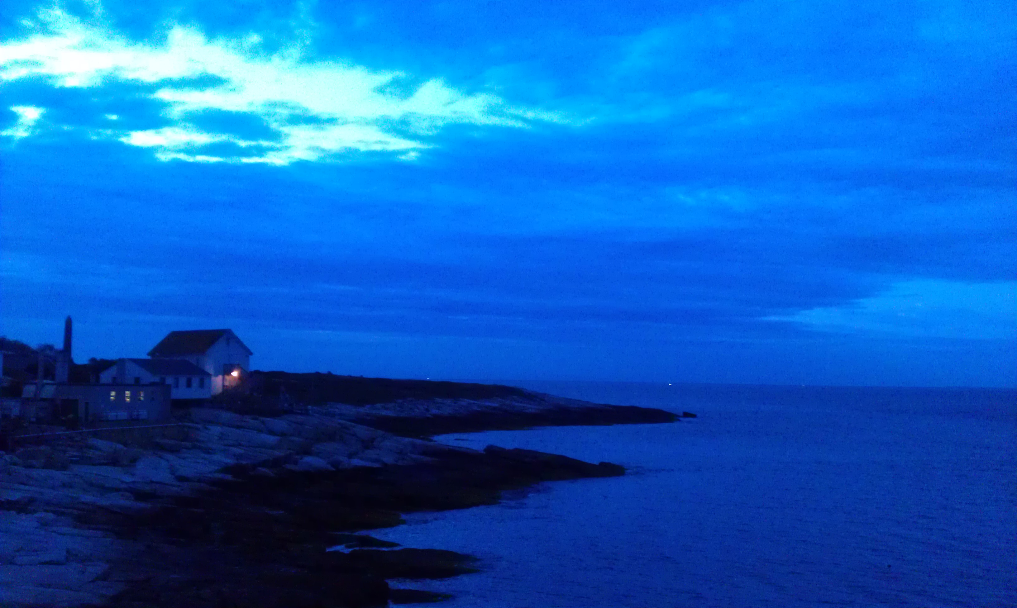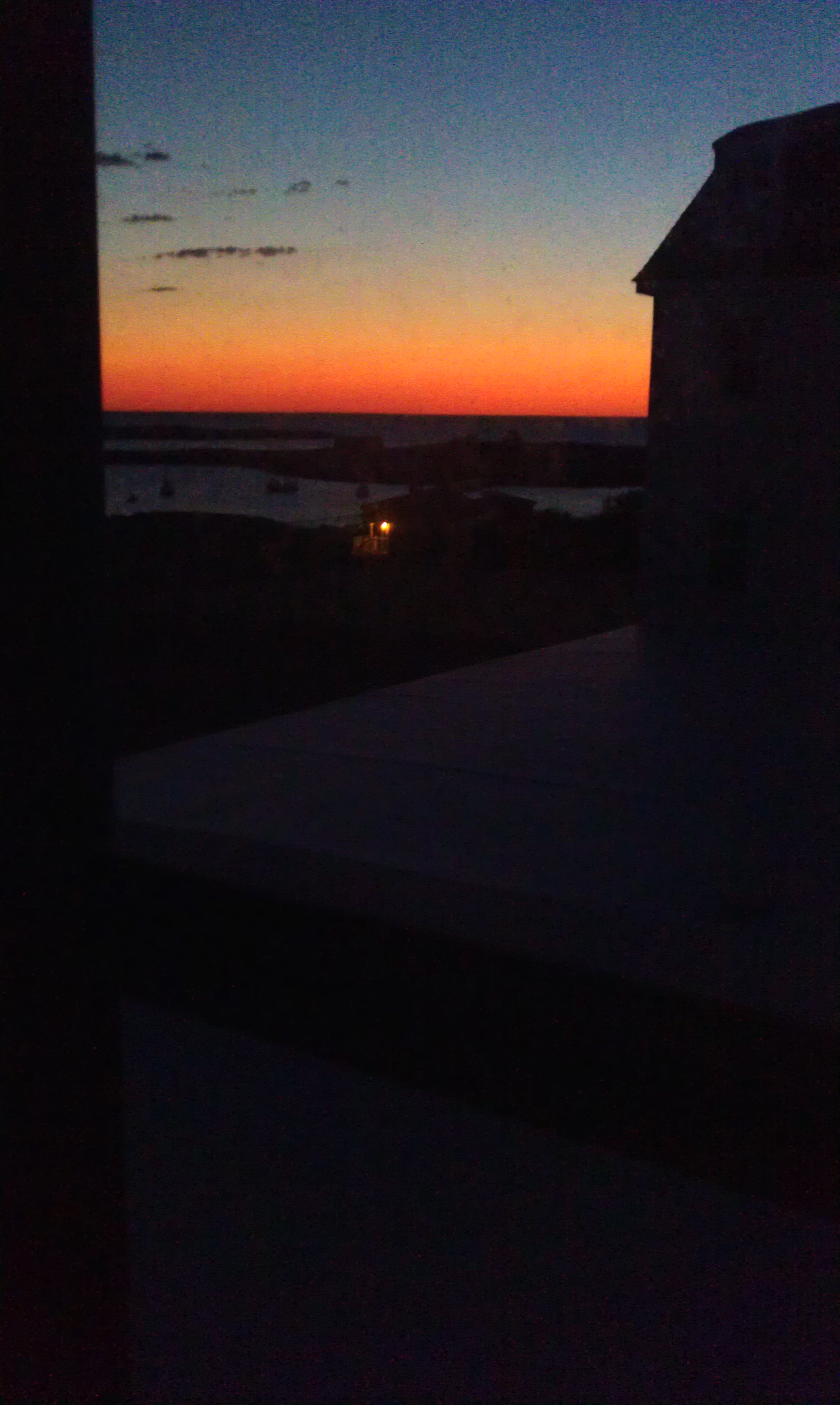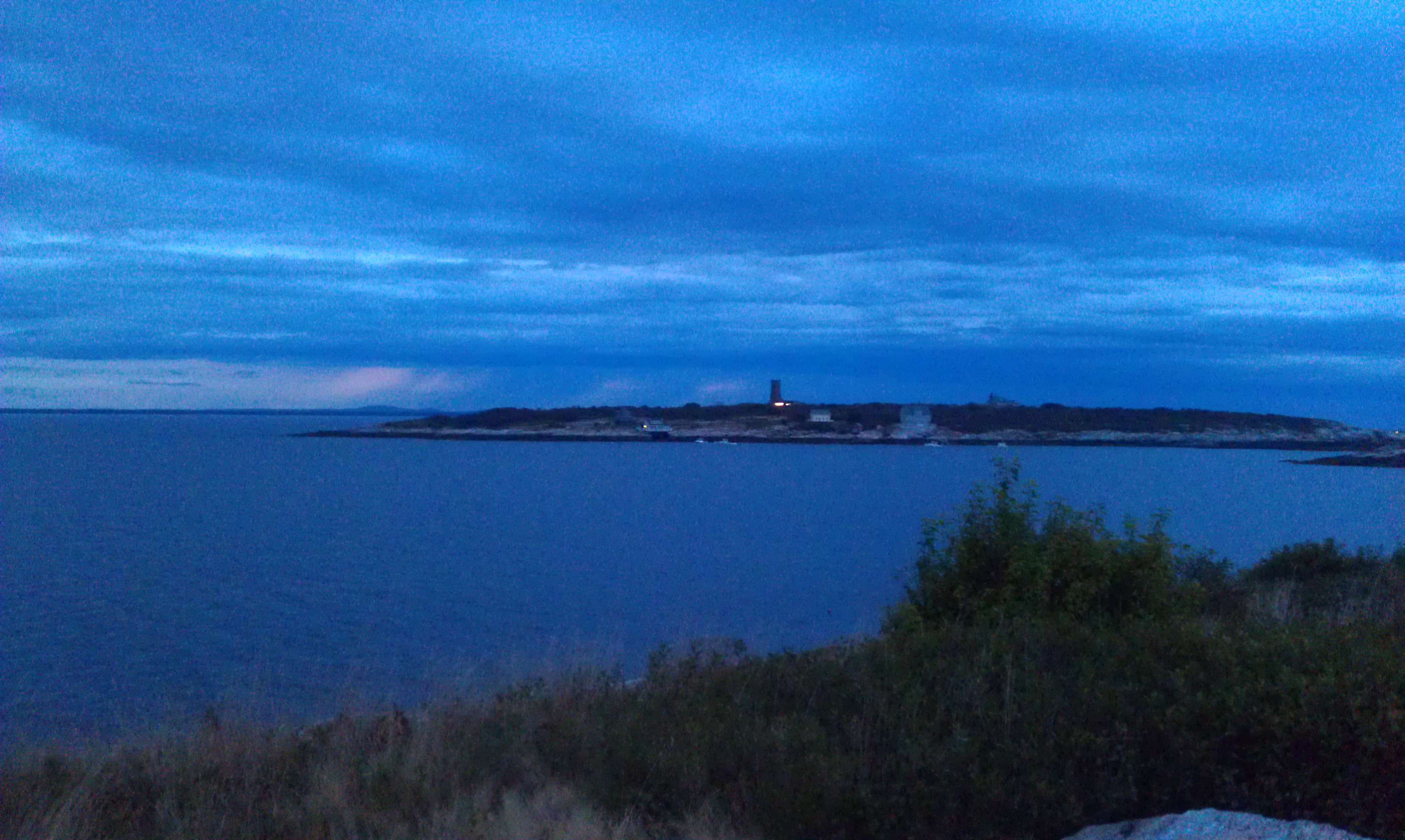 Below: my first sunrise on Star Island. I sat up and looked out my window, seeing the first hint of light. I had a view of nearby Smuttynose and Cedar islands, and the Atlantic…