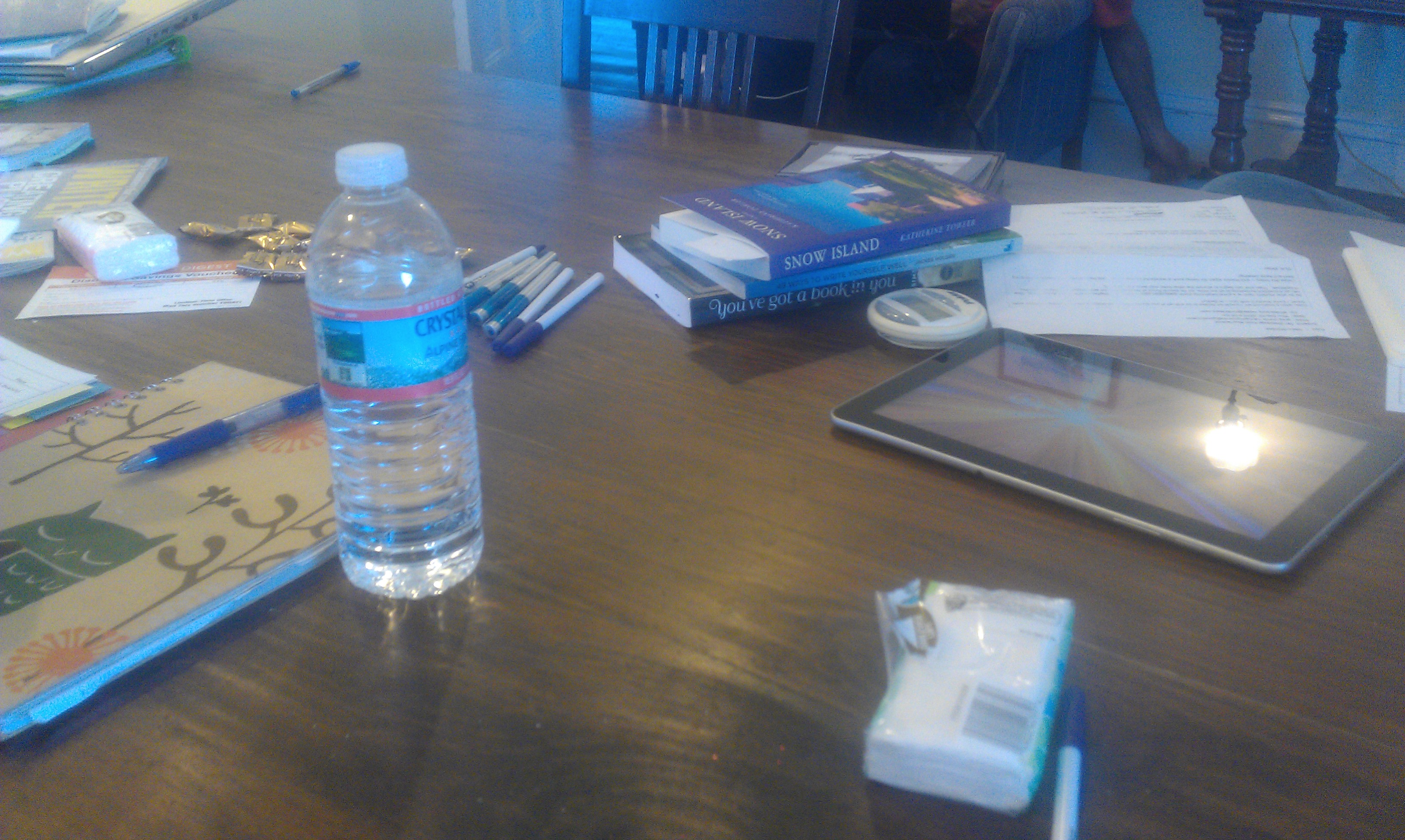 Below: our first evening there, the writers met and got down to business. I had an AMAZING group…and a fun, fearless leader in Dale Slongwhite. We were given prompts, then we had about 10-20 minutes to write in silence. Afterwards, we’d each take a turn reading what we’d written aloud to the group.