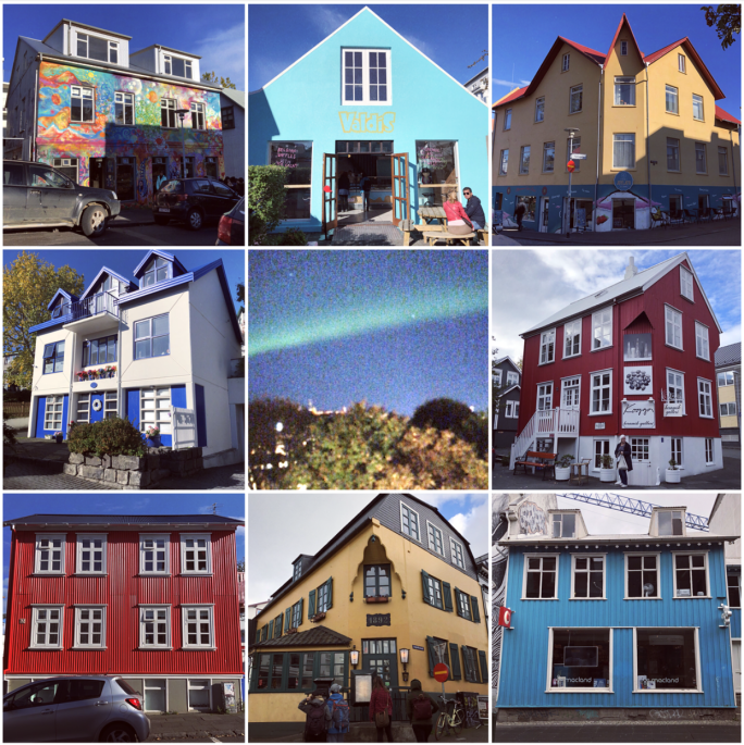 Above: a few of my favorite buildings, and in the center, one of my own photos of the Northern Lights. Yes, I saw the lights for the first time! More on that later, as well…