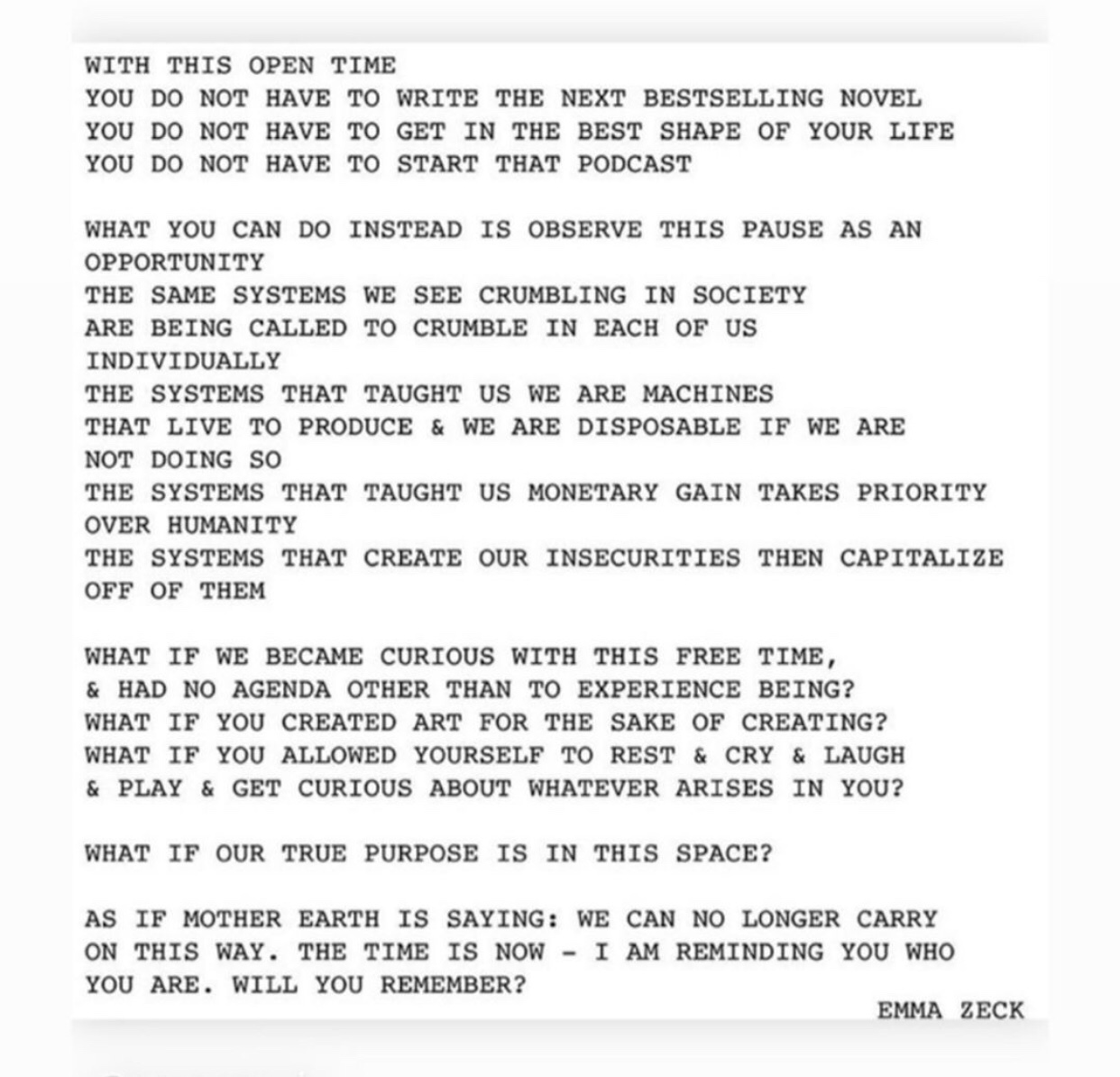 And if there’s one thing this illness has made clear, it’s that we have been doing all the WRONG things to ourselves, other living beings, and the planet.