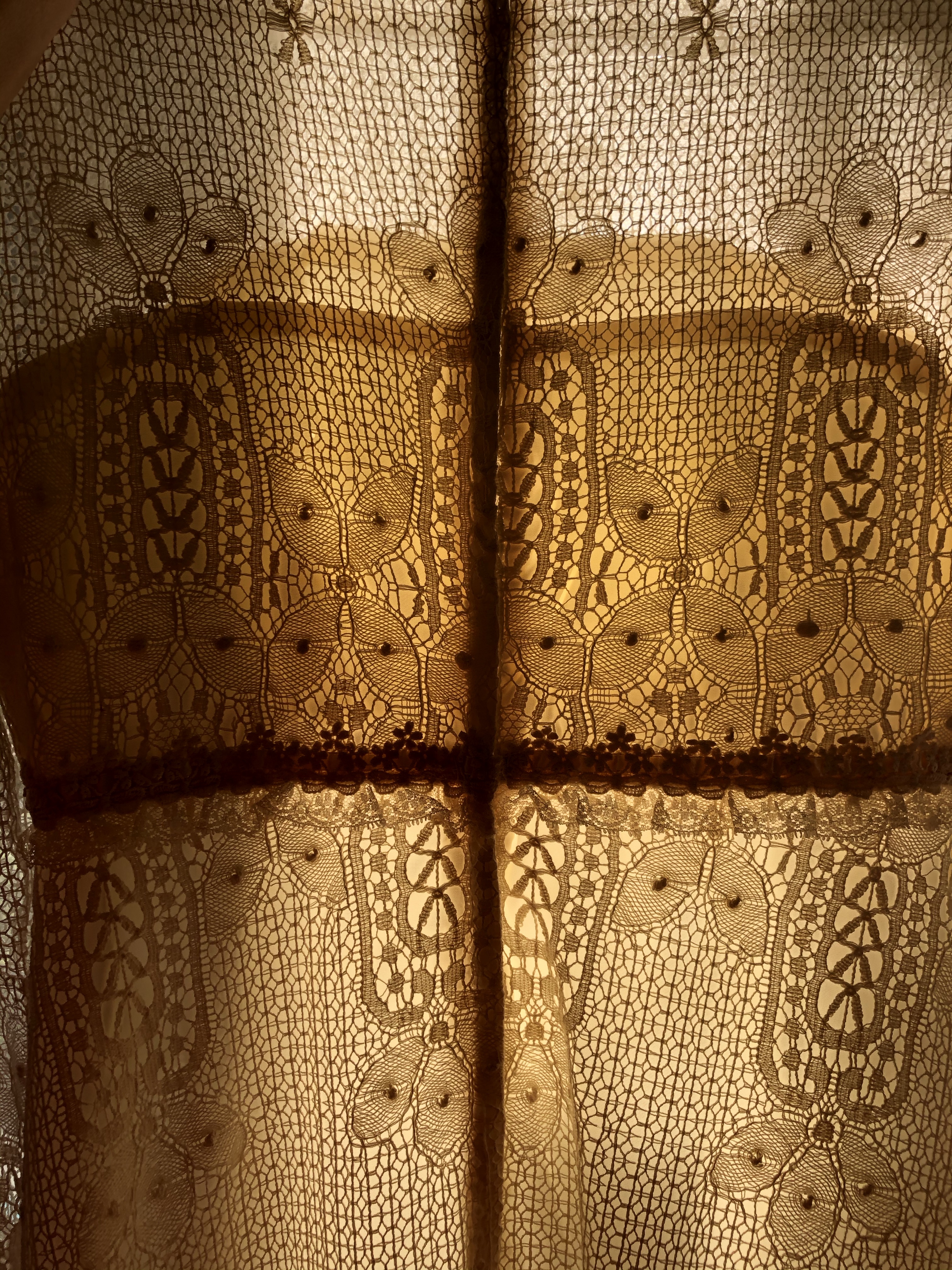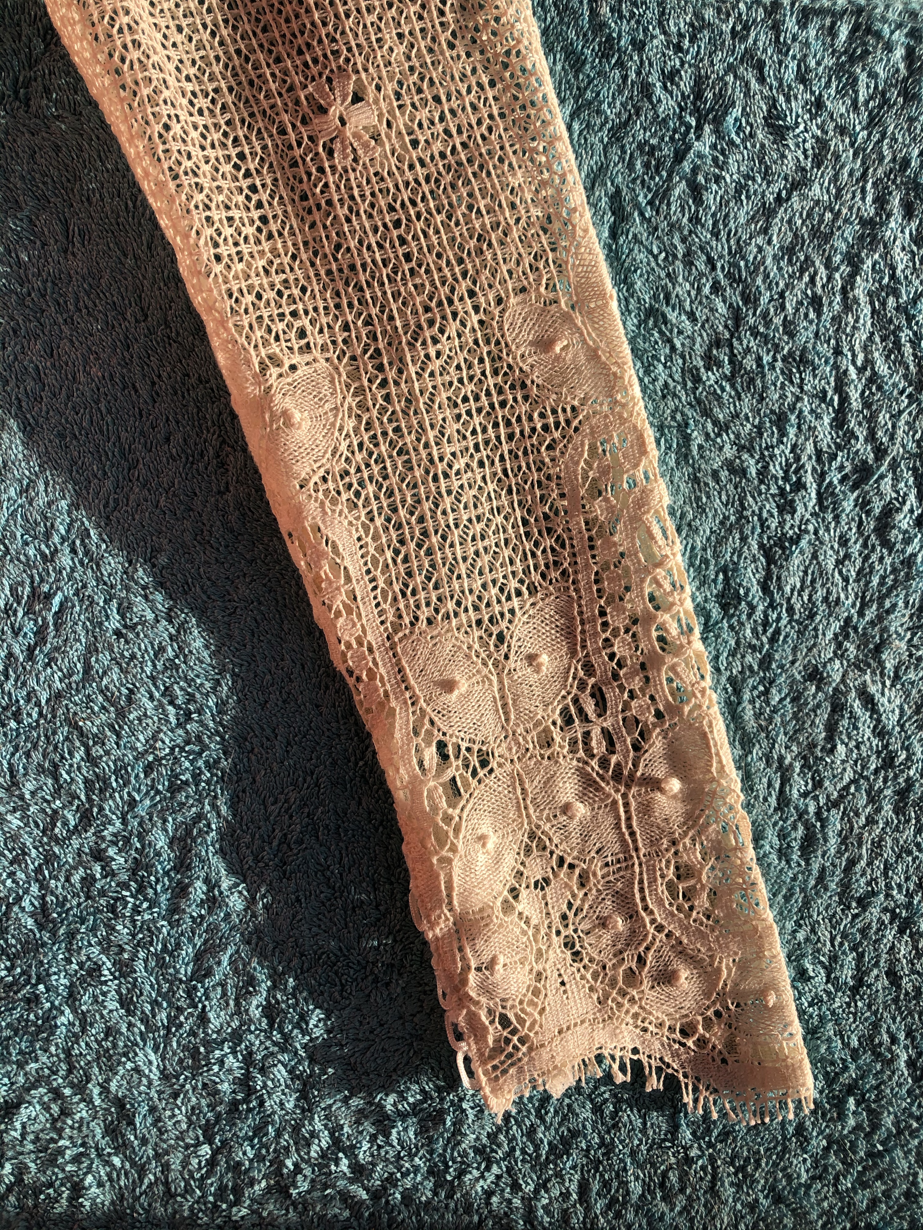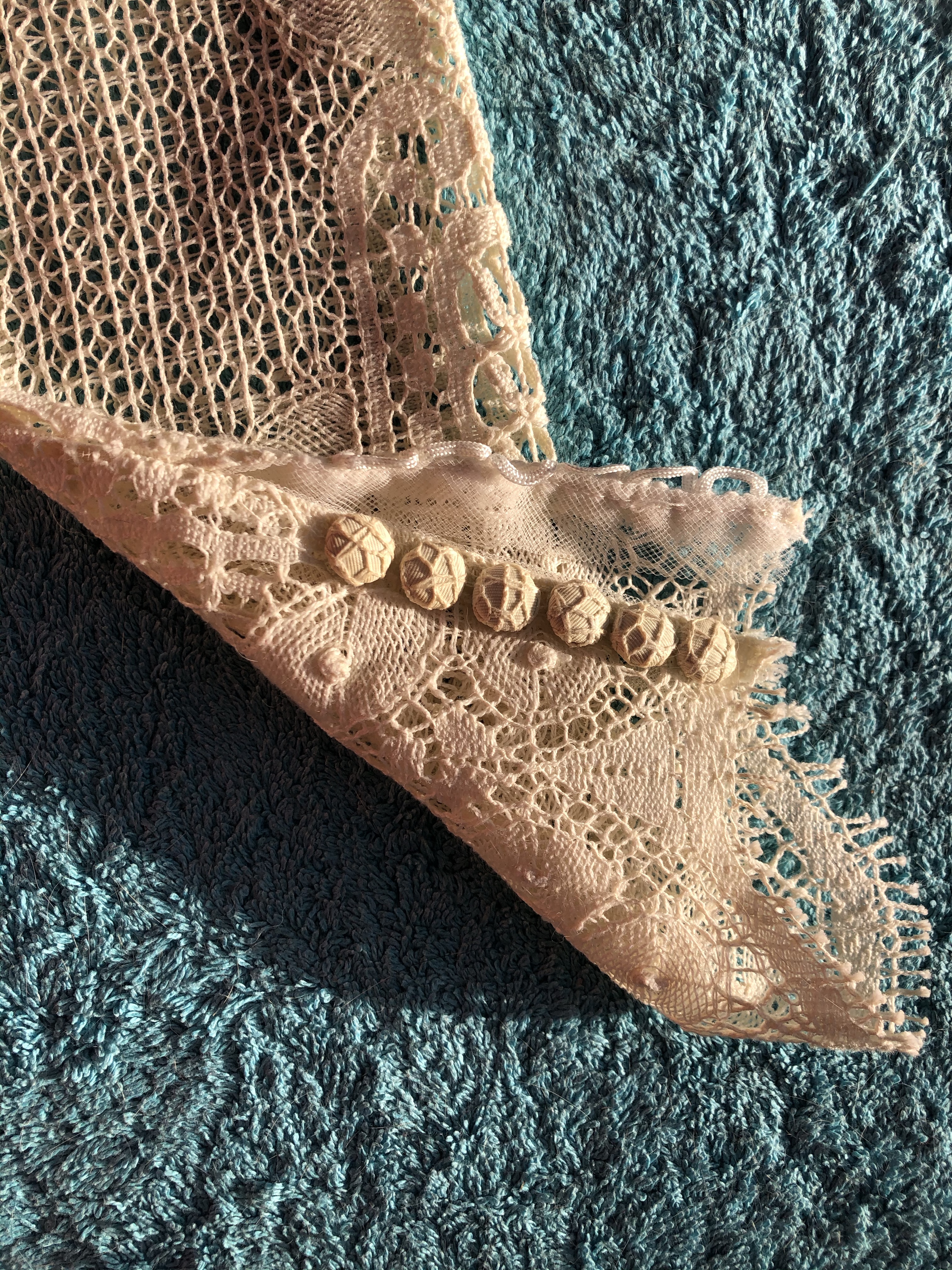 Okay, so there are many theories as to exactly HOW old this dress is. I’ve had several people inspect it, and it’s hard to pinpoint an exact time period. 1970’s at the VERY latest, but several have confirmed that it’s likely much older than that, just by looking at the intricate lace patterns and how they were crafted. If anyone out there is a clothing expert and can tell me when this dress was made, please send me a message! Here are some close up shots…