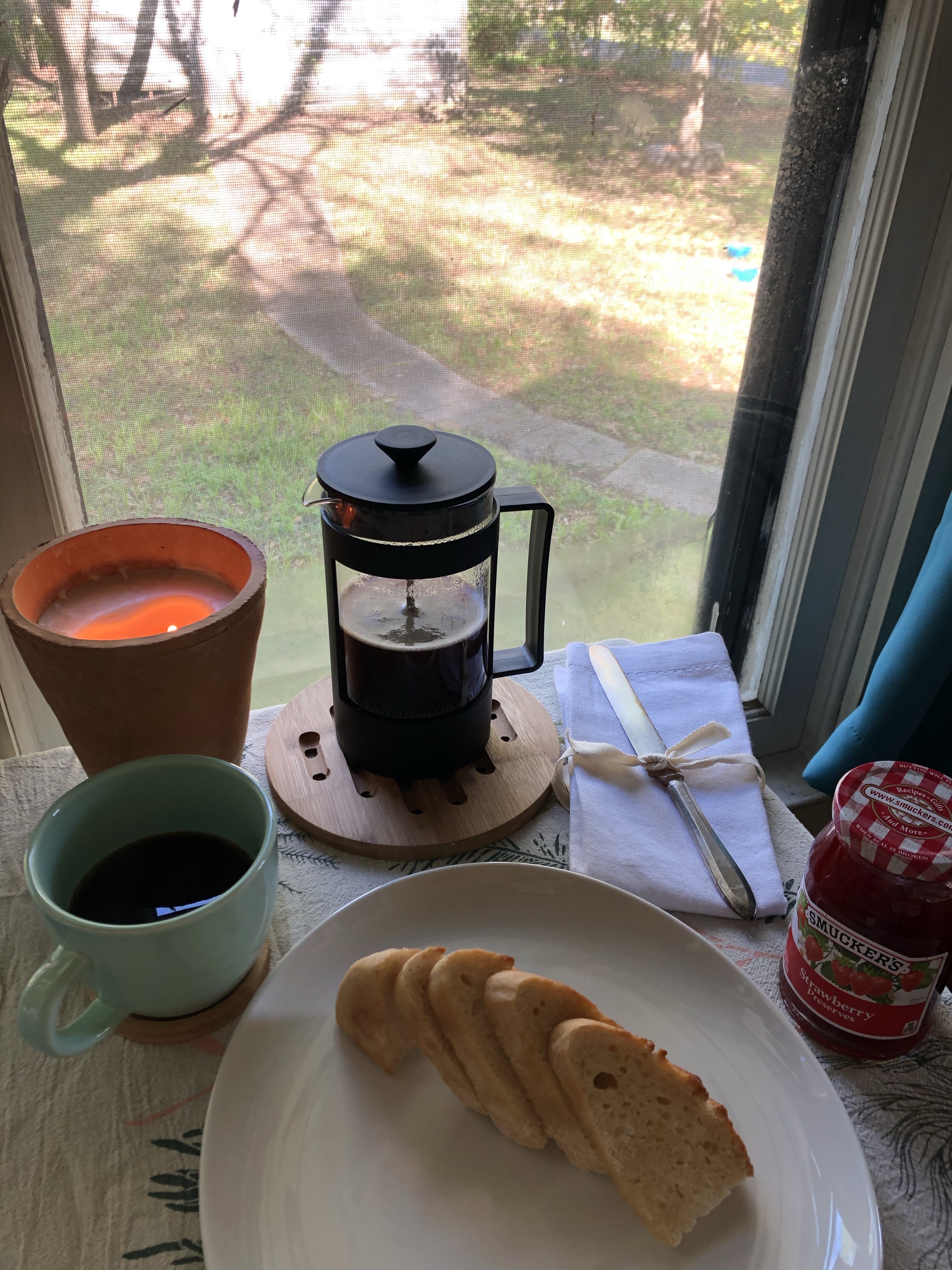 I had my fresh bread with coffee — OBVIOUSLY. ππΌ βοΈ In this case (above), I used my gorgeous glass pour over brewer and my new coffee cup.