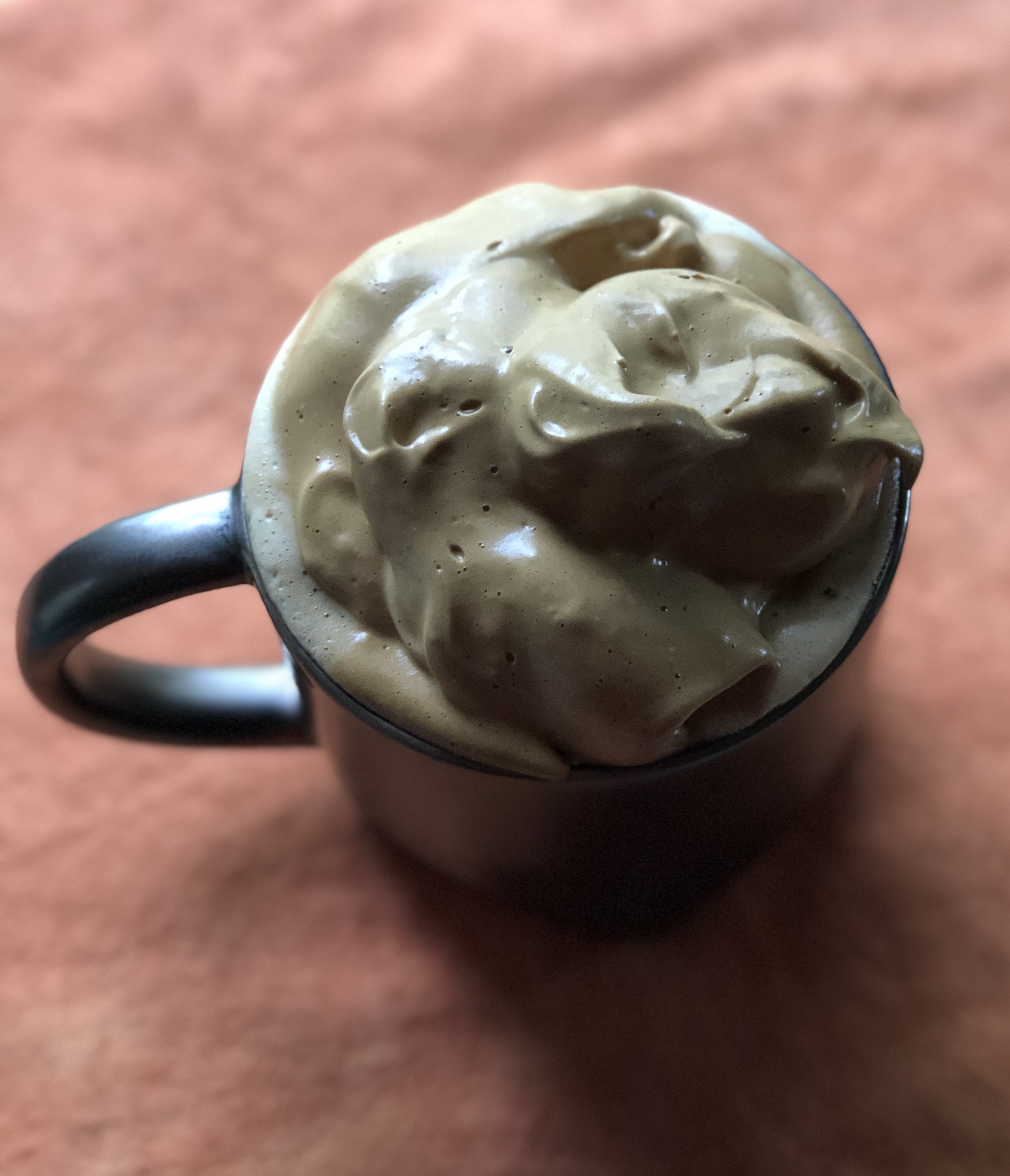 I even learned how to make DALGONA COFFEE. You just whisk instant coffee, sugar, and water…and you get a fluffy, whipped coffee topping for milk (almond milk, for me). Oh my goodness…
