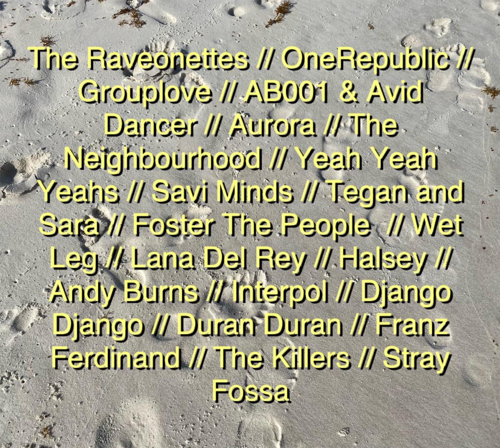 And in case the link doesnโt work for you, or if you want to look up the songs individually, here is a complete list of the bands AND songs, in order: