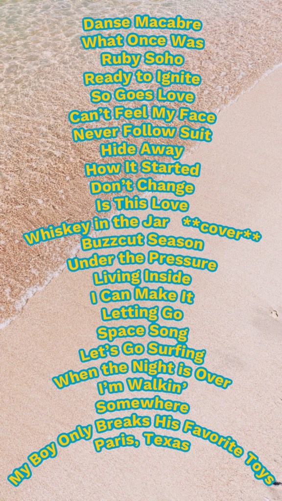 But enough about Taylor. Because there’s also everything from THE TURTLES to METALLICA, from FATS DOMINO to CUT WORMS, from INXS to JIMMY CLIFF.