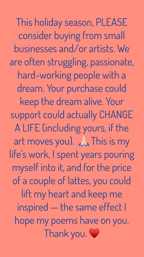 And please, please spread the word/share info on your personal sites about “Scandinavia.” It costs you nothing to do so, and it could really help this book reach other people who may be inspired or healed by it. ♥️ You can share entire poems or photos of my poems — so long as you give me credit, of course.